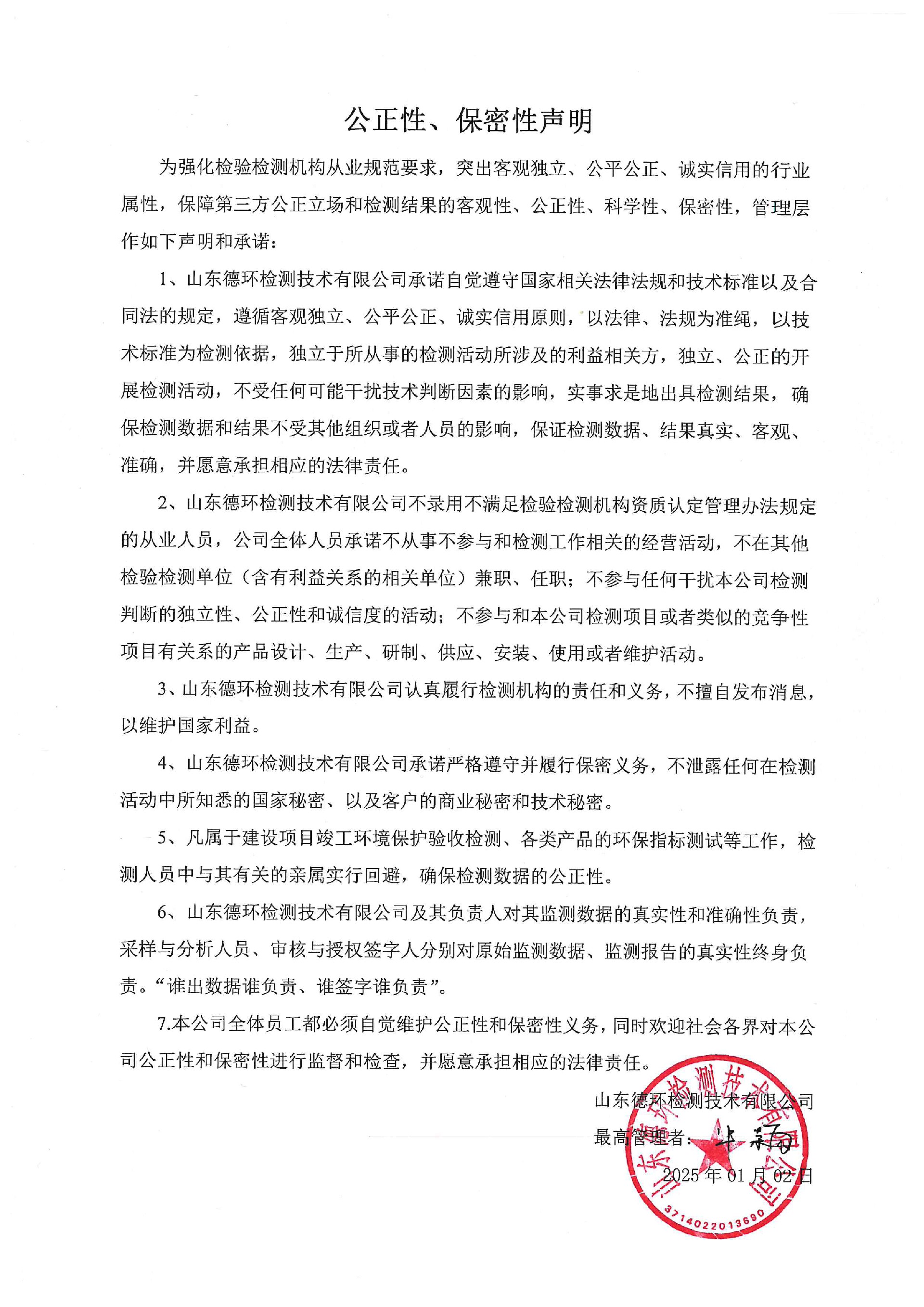山東德環(huán)檢測技術(shù)有限公司公正性、保密性聲明